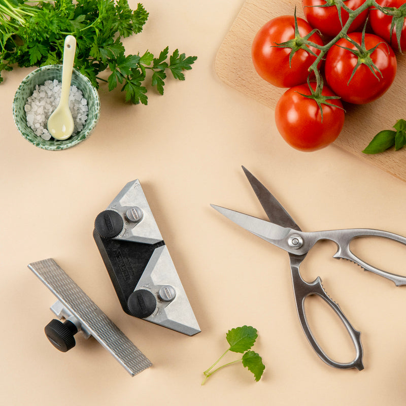 The Tormek® SC-60 Scissor Jig is engineered for professional-grade sharpening, compatible with Tormek T-8, T-4, and T-2 models. It features a quick 60-degree angle setting and a strong clamp for stable, precise honing of all scissors—from kitchen to heavy-duty shears. Its hex-patterned support plate minimizes vibration and friction, ensuring consistent results. Extend your scissors’ lifespan and restore their cutting edge efficiently with this durable, easy-to-use jig. Elevate your sharpening routine with the SC-60—precision and performance designed to make every cut smoother and sharper.