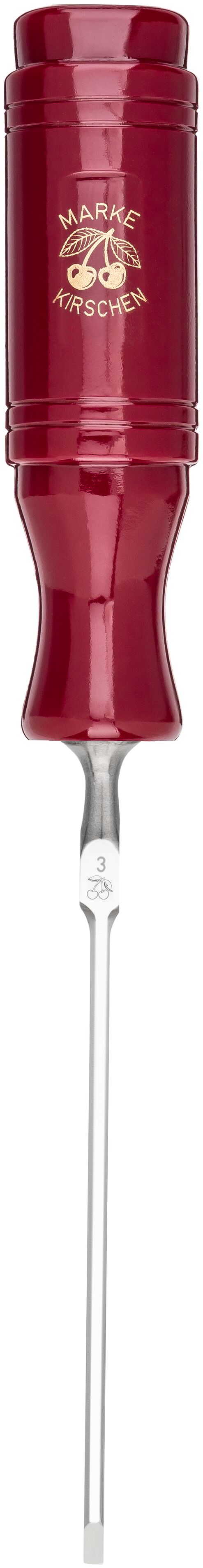 Finish: Polished blade with a glossy red lacquered handle.