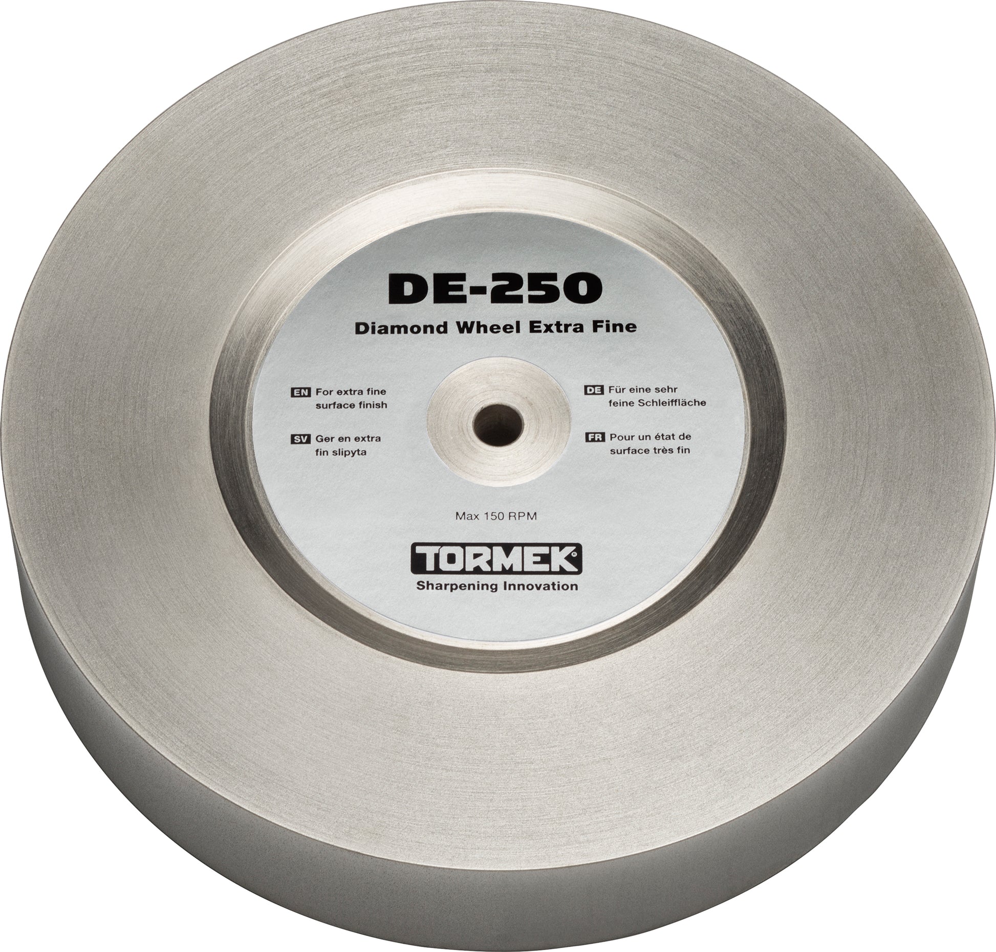 Diamond grinding wheel for the Tormek T-8. The Tormek DE-250 Diamond Wheel Extra Fine is a diamond grinding wheel that provides an extra smooth finish and is especially suited to carving tools and knives requiring minimal steel removal. It is 1,200 grit.