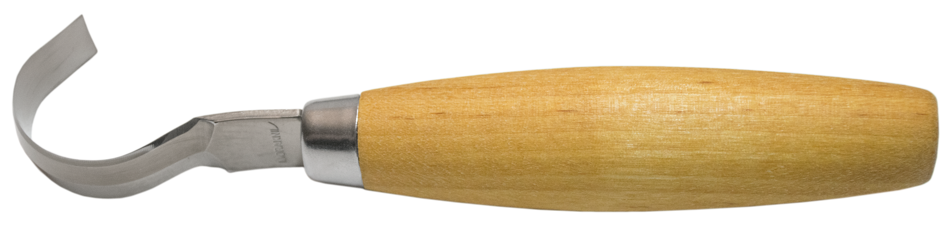 The barrel-shaped handle is made from FSC® certified Scandinavian birch wood, oiled for a comfortable grip and allowing customization to suit your hand. Its full rat tail tang runs through the entire handle, ensuring exceptional strength and stability in every cut. With this tool, your creativity knows no limits, whether you're carving spoons, bowls, or other intricate designs.